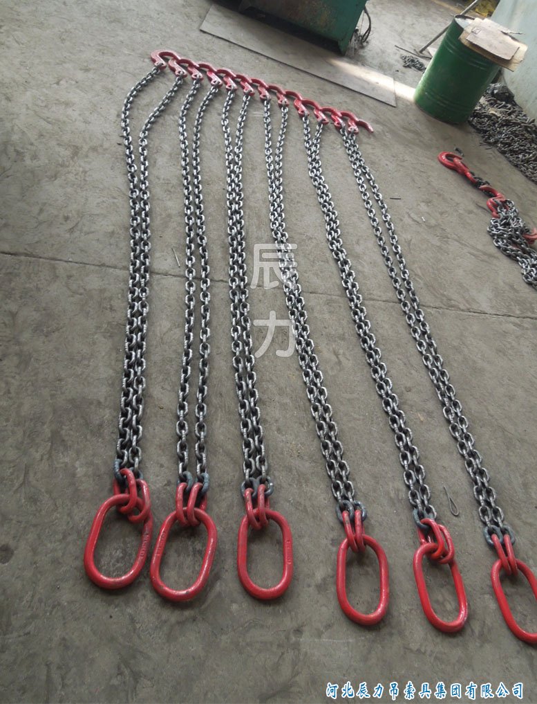 辰力公司可按照客戶的需求生產(chǎn)帶連接環(huán)的雙腿起重鏈條索具。如上圖為13mm的連接環(huán)與10mm鏈條相連接,這樣可大大減小鏈條索具的成本。